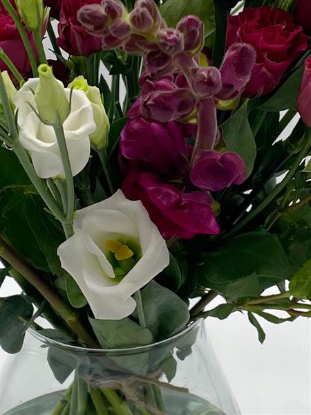 This arrangement is a Florist's Choice arrangement, the photo is for guidance on the style of the bouquet only